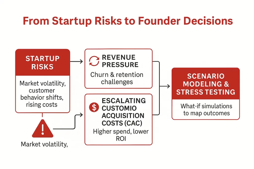 By modeling these risks in advance, founders can prepare strategies to protect runway and maintain investor confidence.